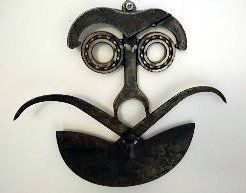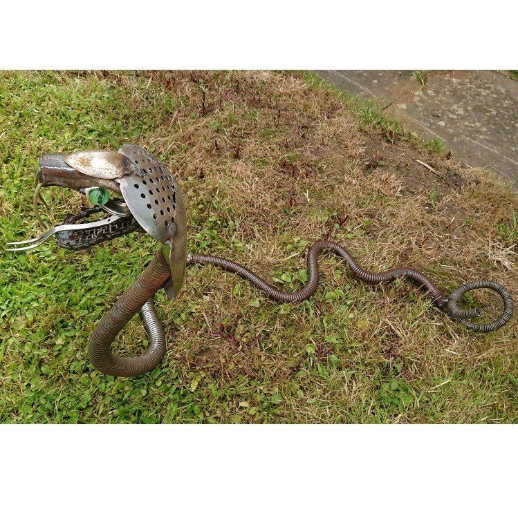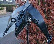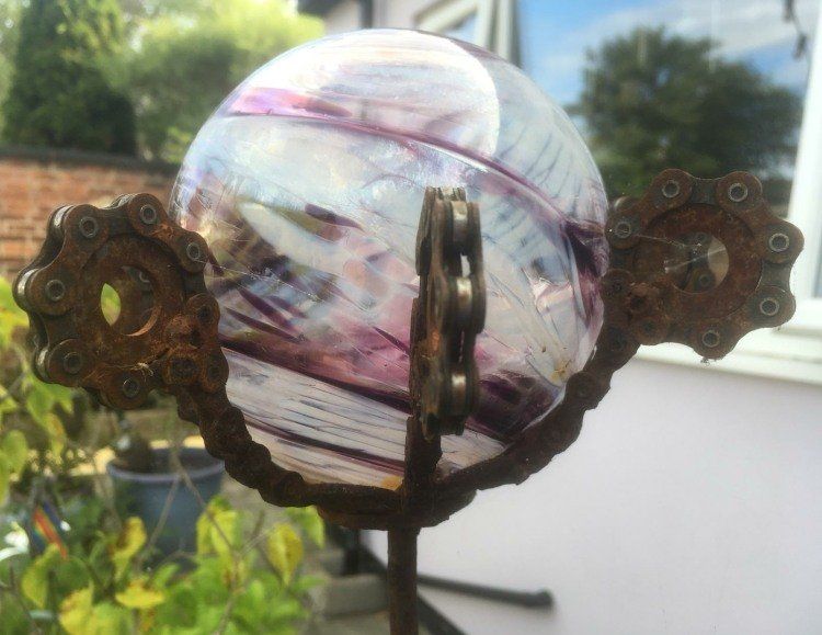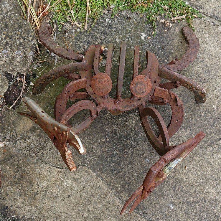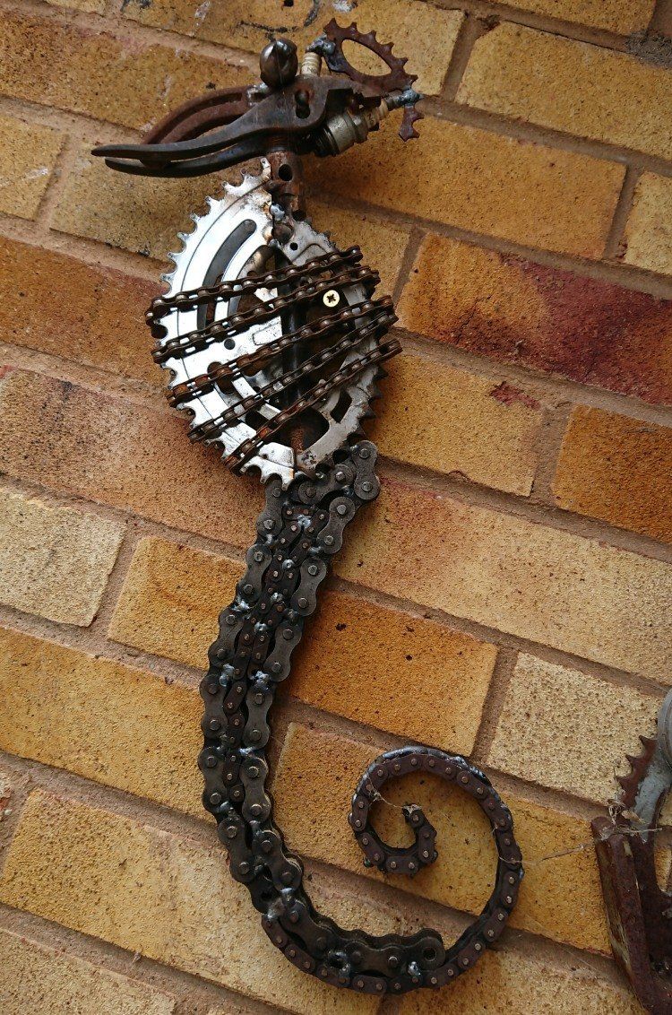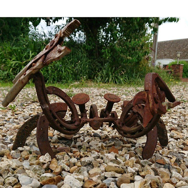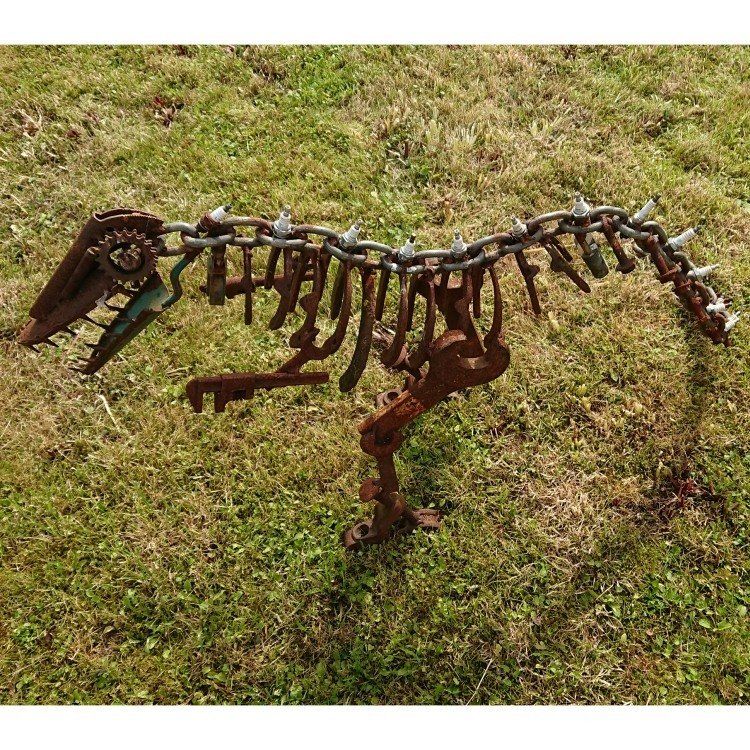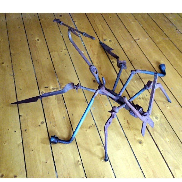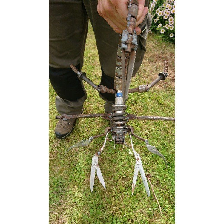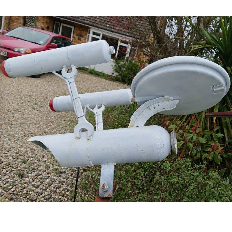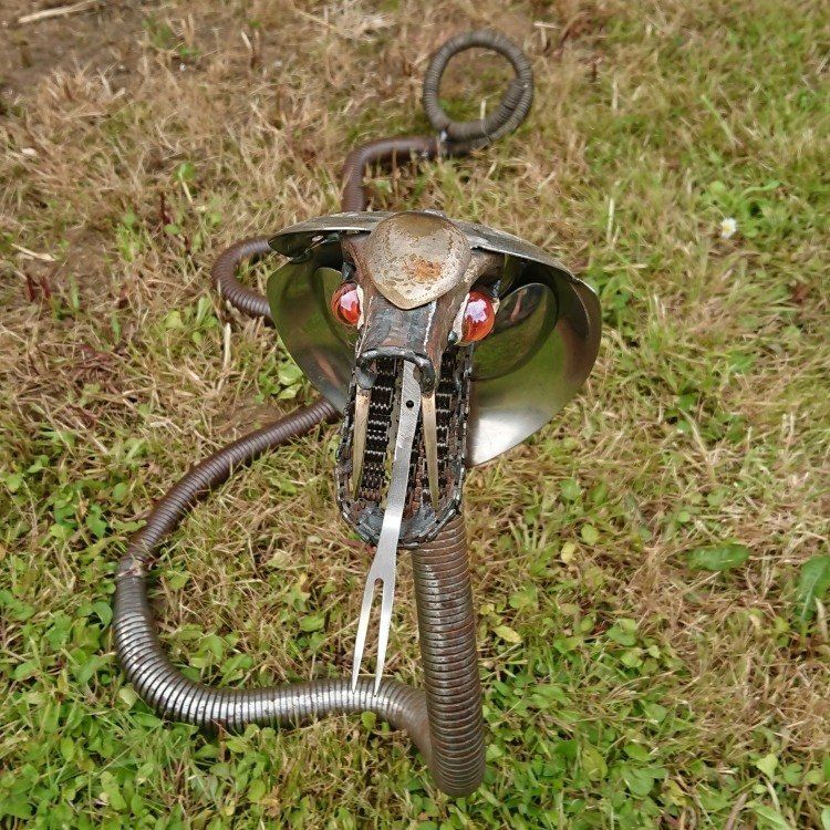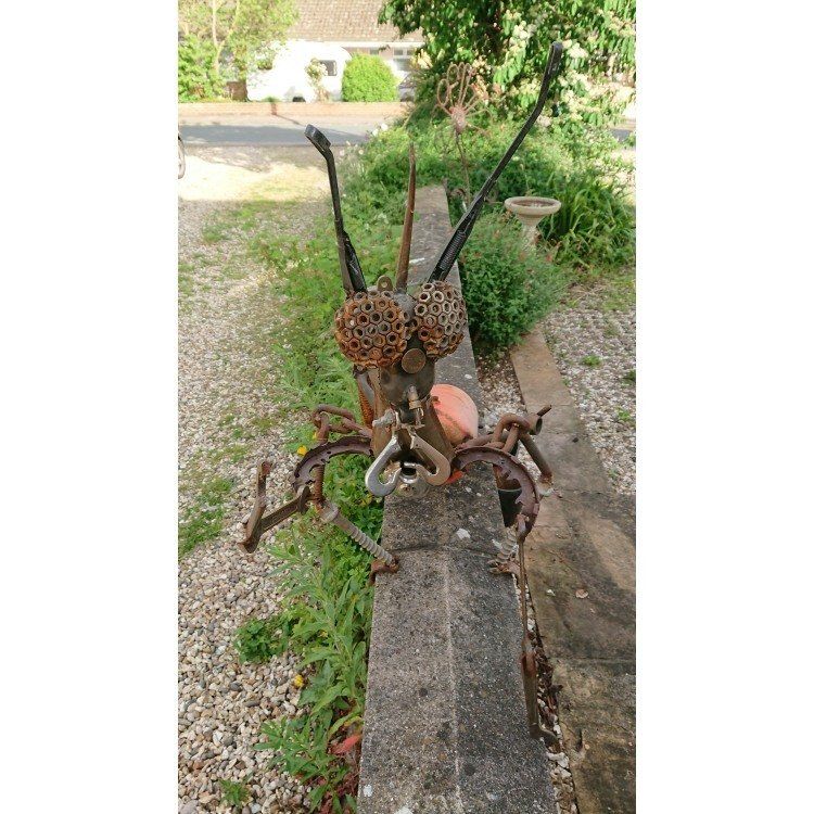 What else should sit oppose the Enterprise as driveway lights? Constructed from Jack saw blades to get the curved wings. The light is an old fashioned bicycle headlamp but with an LED light fitted.